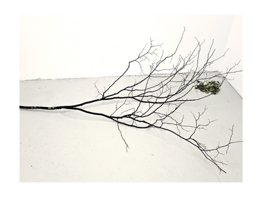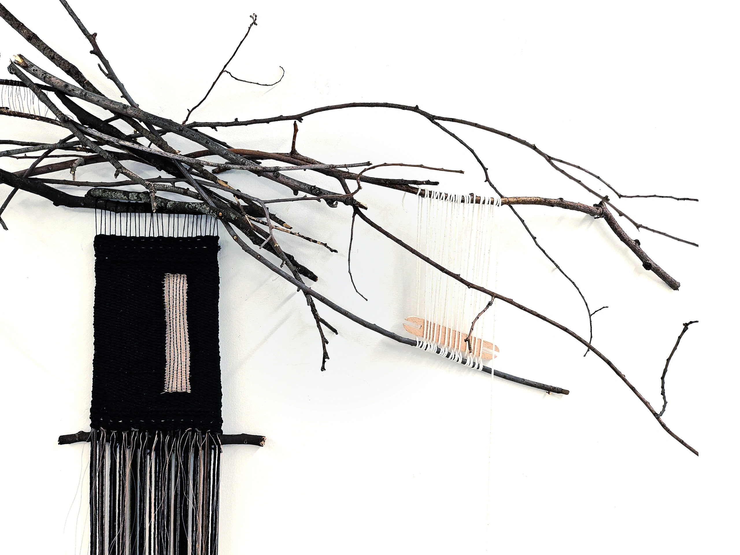 Her ongoing series Loom [2024-present] explores the relationship between unwanted materials and the balance between needs and wants, bare necessity and luxury. Each piece in the series features curated tree branches repurposed as textile looms. Using unconventional materials as a means for storytelling through weaving, we can examine our relationship in the material world and ponder our definition of value.
